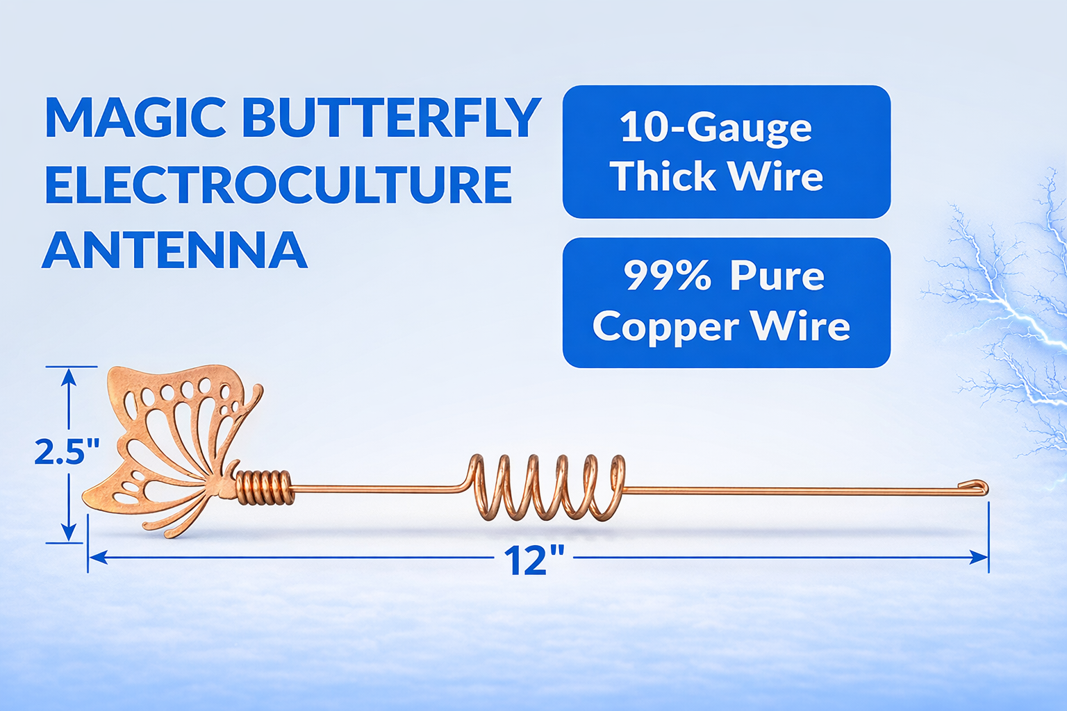 Magic Butterfly Electroculture Antennas are made from 99.9% pure copper, one of the most conductive natural metals.