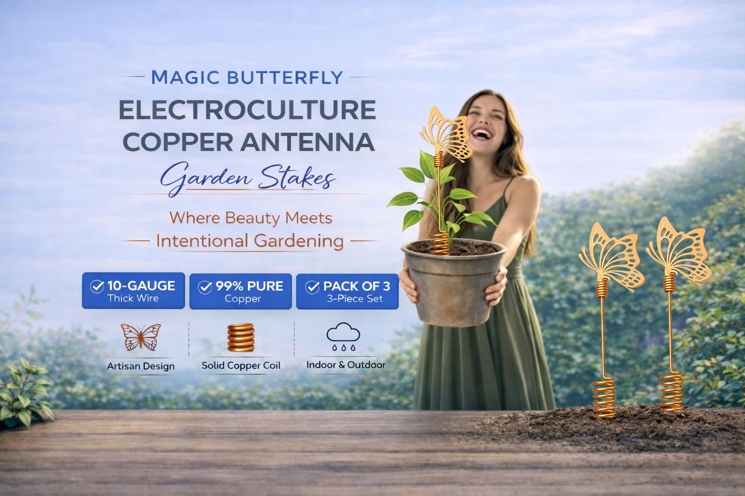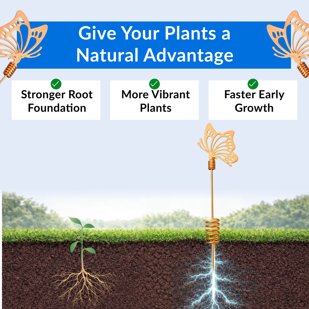 Gardeners experimenting with electroculture copper antennas and decorative butterfly garden stakes often report plants that appear: