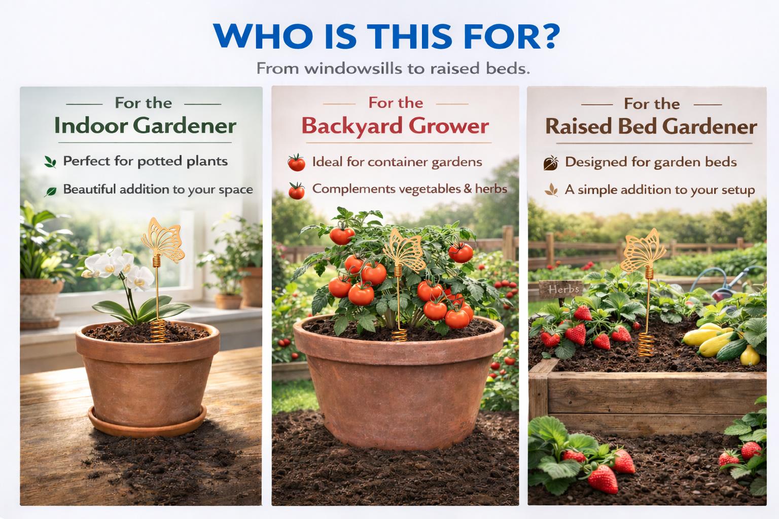 Whether you're building a vegetable garden, decorating raised beds, or creating a peaceful backyard retreat, these decorative butterfly garden stakes bring a rare combination of: