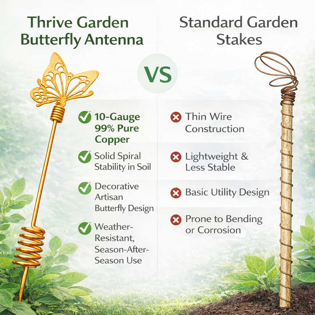 Unlike thin decorative copper stakes, Magic Butterfly antennas use heavy copper wire designed for long-term outdoor use.